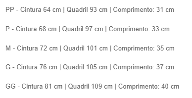 (com a peça em repouso e fora do corpo, considerar grande elasticidade do tecido)