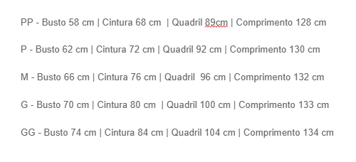 MEDIDAS APROXIMADAS (com a peça em repouso e fora do corpo, considerar elasticidade)